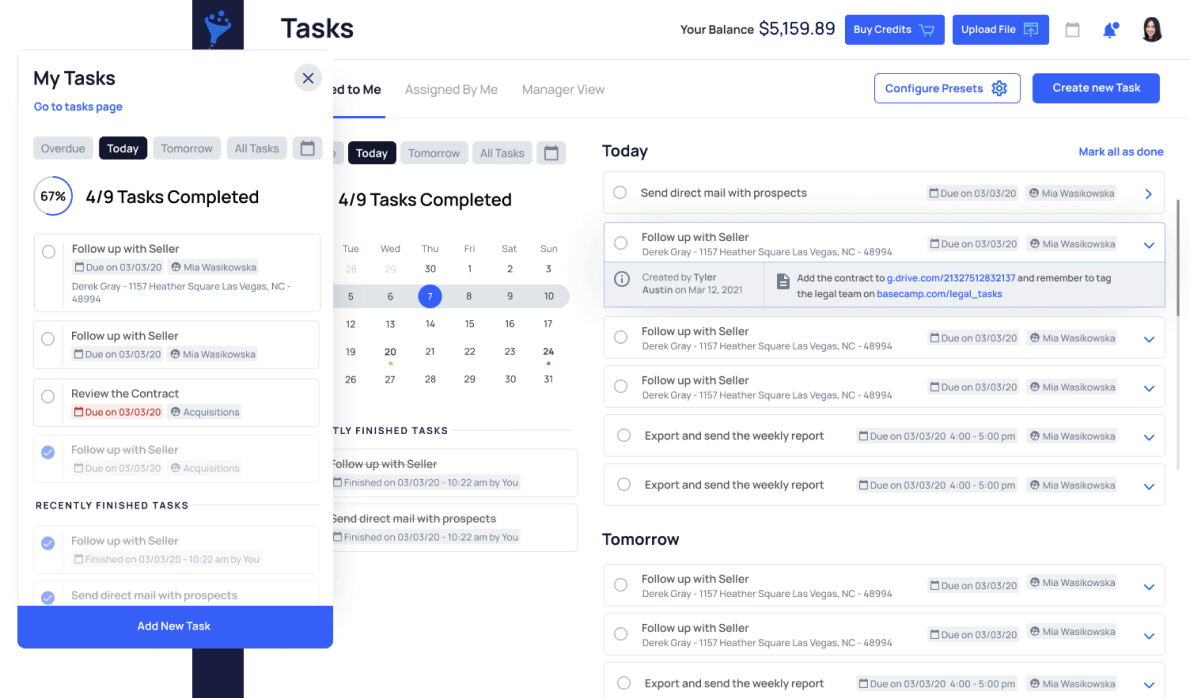 How much money are you losing because of clunky processes? Leads that fall through the cracks, unclear marketing to-dos, or poor follow-up systems? Tasks is REISift’s project management solution. It’s heavy-hitting software that will ensure your business runs like a business… not like a circus.